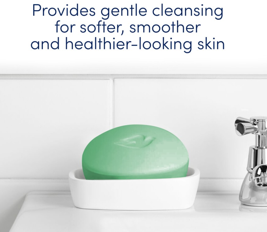 • #1 Dermatologist recommended bar brand • Dove bar effectively washes away dirt and germs • This beauty bar leaves skin refreshed with a crisp, cooling cucumber and green tea scent • Mild cleansers with ¼ moisturizing cream help protect skin’s moisture • Leaves skin softer, smoother and more radiant looking than ordinary soap • Suitable for daily use on face, body and hands